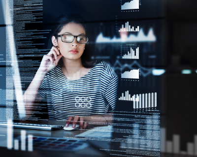 man at computer analyzing code shown digitally representing a customer experience data analytics platform
